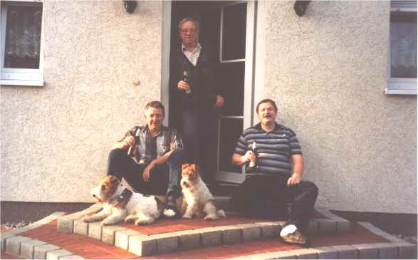 Hier sitzen eine Dame mit vier Kerlen im Hauseingang und lassen es sich richtig gut gehen.